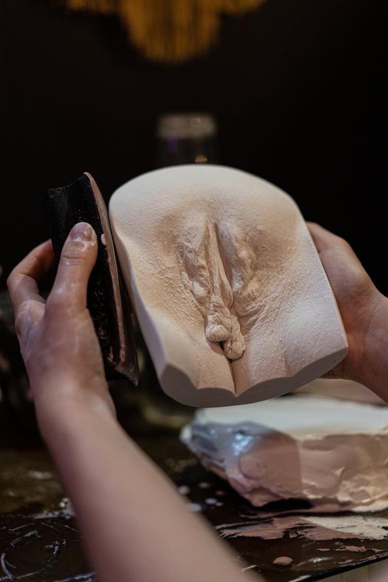 Le moulage de vulve est une expérience unique et intime, permettant à chaque femme d’explorer sa sensualité et d’en célébrer l’unicité. Grâce à un processus de moulage innovant et respectueux, je capture les détails de chaque courbe et de chaque texture, offrant un souvenir tangible de la beauté féminine. J'ai à coeur de créer un environnement confortable et sécurisé, où les clientes peuvent se sentir à l'aise et en confiance. J'accorde une attention particulière à la qualité et à l’esthétisme de chaque création, garantissant ainsi une œuvre d’art personnelle et significative. Découvrez la richesse de votre corps à travers une séance de moulage de vulve, une célébration de la féminité et de l'amour de soi.